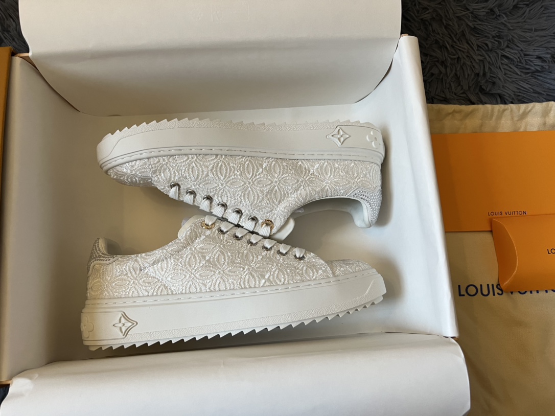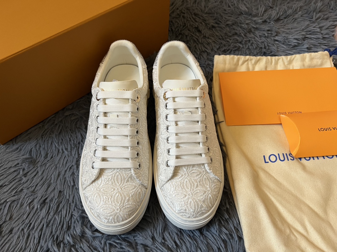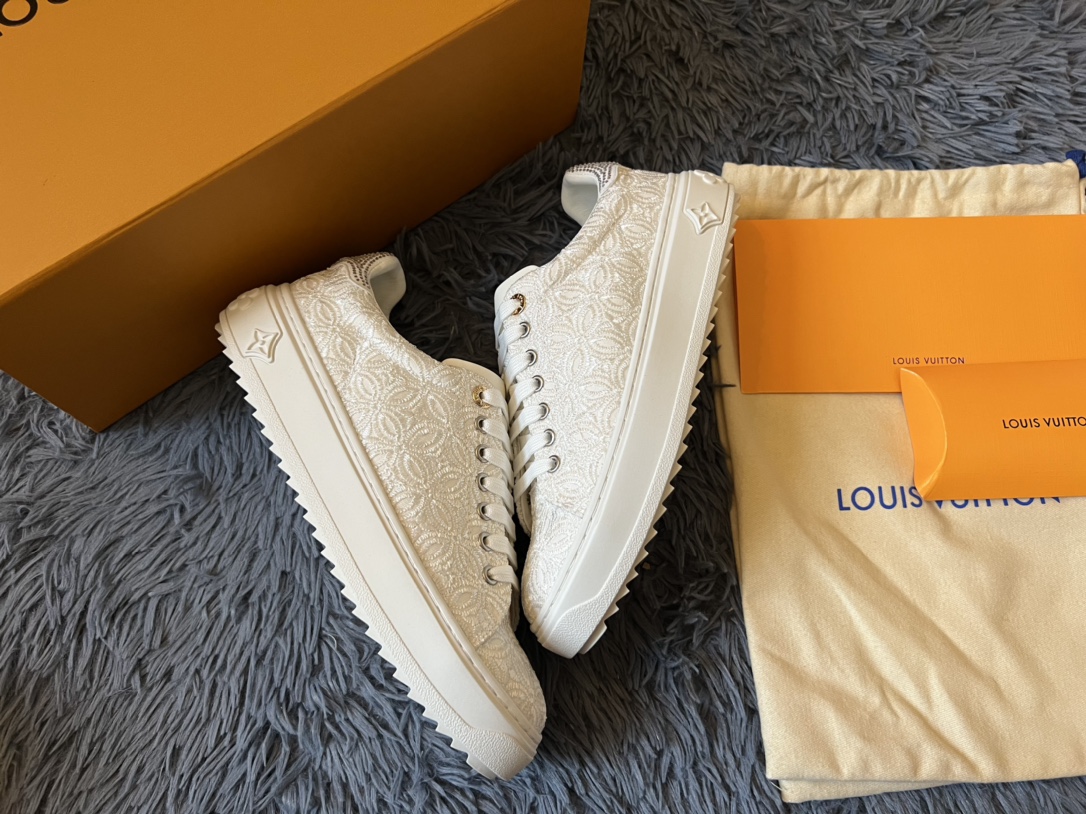 ???? Louis Vuitton Time Out 24 Spring/Summer new sneakers give sneakers ELEGANT and HIGH-END style Easy height increase simple and versatile selected calfskin material water-dyed sheepskin lining TPU outsole Size:35-41